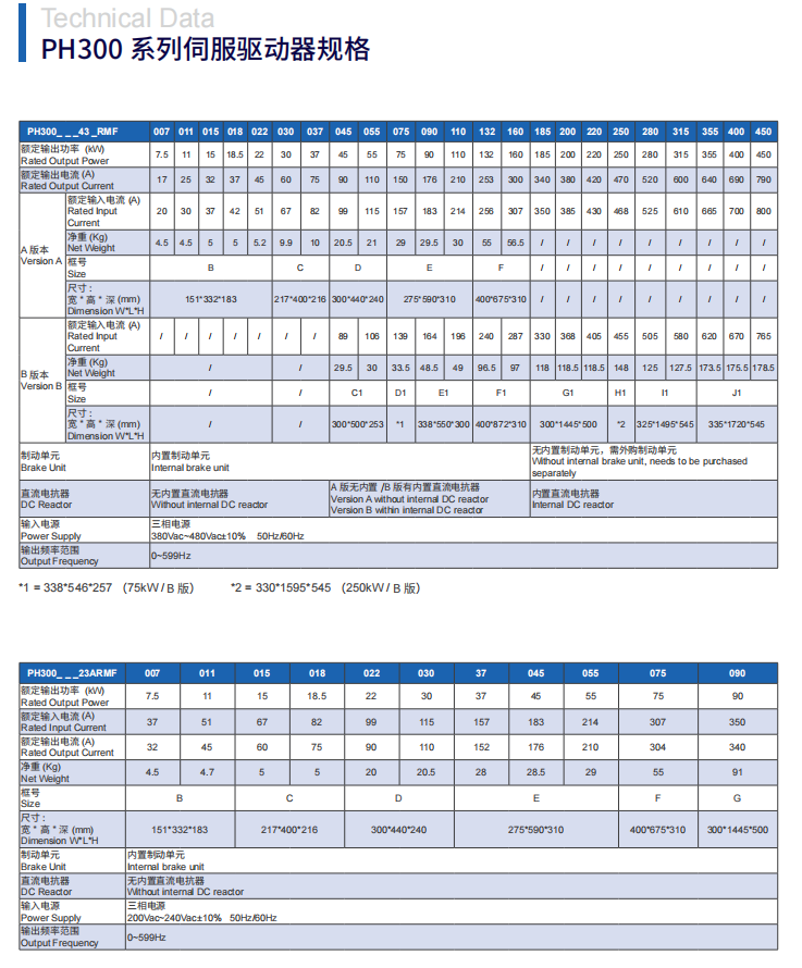 l 额定输出功率:7.5kW~450kW